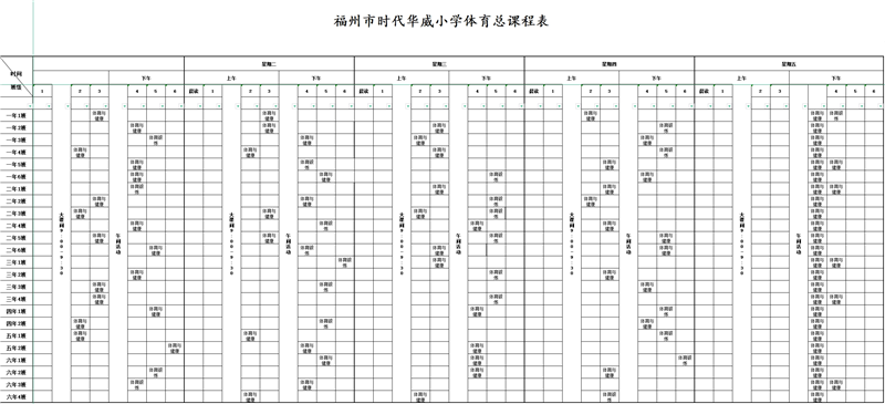 根据《福州市教育局关于进一步加强全市中小学体育“四项管理”的通知》(榕教综〔2024]3号)要求,为进一步做好我校体育教育教学,推动我校体育工作向更高质量发展,现将福州市时代华威小学2023-2024学年第二学期体育与健康、体育锻炼课表公示如下: